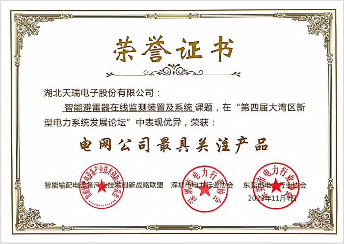 同时米兰官方版网站登录入口-米兰online(中国) 公司“TR-ICM-10型避雷器在线监测装置及系统”在第四届大湾区新型电力系统发展论坛中获得“电网公司最具关注产品”。