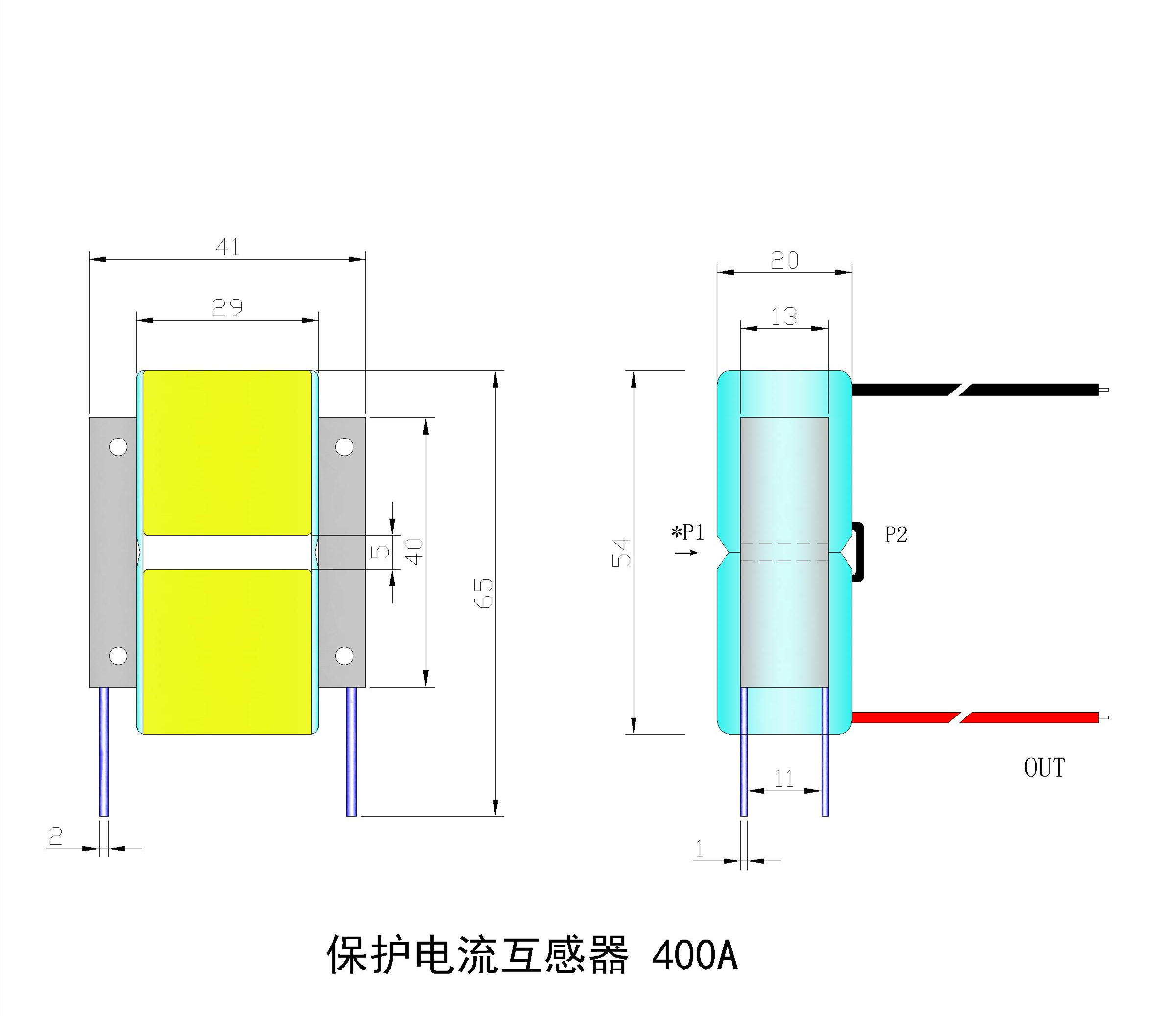 测量互感器和保护互感器的型号根据电流大小匹配的断路器选用,通用的型号一般为250A,400A和630A三种,互感器的输出信号大小根据信号采集板元件适用电压范围选定。