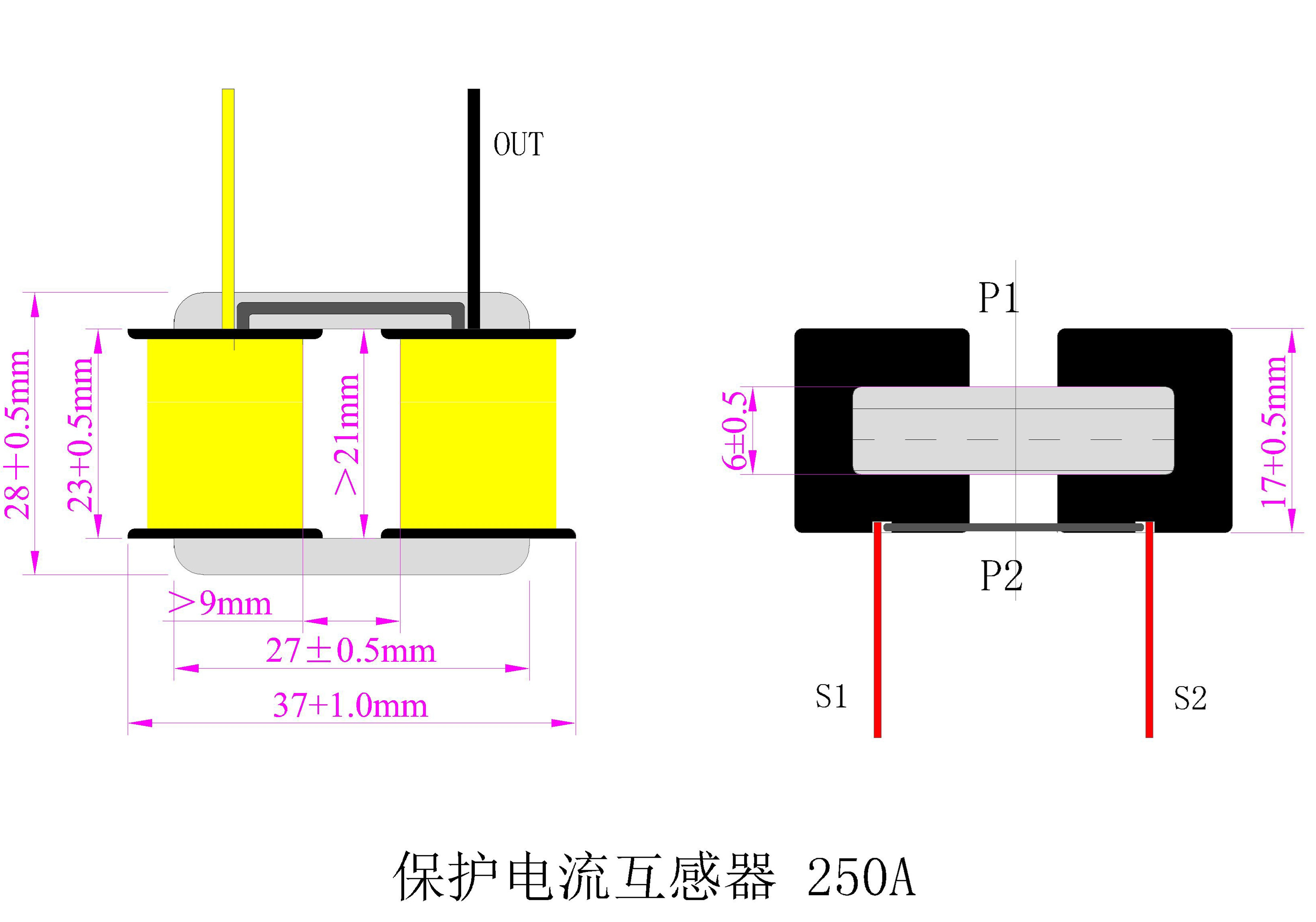 测量互感器和保护互感器的型号根据电流大小匹配的断路器选用,通用的型号一般为250A,400A和630A三种,互感器的输出信号大小根据信号采集板元件适用电压范围选定。